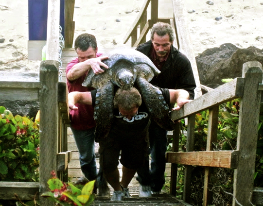 Oregon Coast Aquarium officials are trying to save a large tropical sea turtle that obviously took a wrong turn somewhere between the tropics and Oregon’s rather cool ocean waters. Oregon Marine Mammal Stranding Network’s Jim Rice said it appears that the male Green Sea Turtle may have found itself trapped inside a warm pocket of water, surrounding by colder water. Once the warm water dissipated, the turtle was exposed to much lower temperatures which caused it to go into a hibernation-like state. It could neither eat nor properly navigate to warmer water.