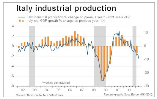 Meanwhile it appears that Mario Monti is facing increasing issues with new fiscal settings as demand and production continue to fall in the face of new taxes: