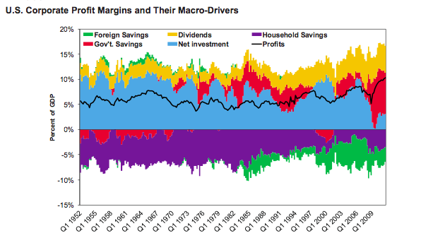 Indeed, James Montier from GMO [] has crunched the numbers and turned out evidence that confirms exactly what we would intuitively expect – namely that government deficits are the main drivers of profits in the post-2008 world: