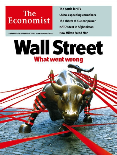 But this should not be surprising given the Economist’s history on the subject of banking. Even though it was early to identify the housing bubble by mainstream media standards (in a June 2005 cover story), at the end of November 2006, as the subprime market was coming apart (it recovered in March 2007 and went into its terminal decline in May 2007), it argued vociferously that financial services in the US was overregulated:
