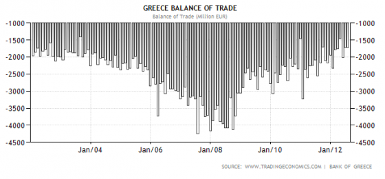 The basic premise of European policy is to tighten government budgets in an effort to drive down deficits. In the absence of a current account surplus in order to maintain a level of national income this requires an expansion of private sector balance sheets. If this does not occur then the most likely outcome is a slowing of internal demand and therefore a slowing of imports. This in turn should drive the balance of trade towards positive territory, but at the same time lower overall GDP.