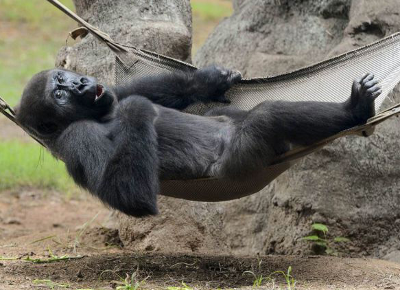That monkey needs a better hammock.