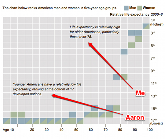 Unfortunately for Swartz, he should also have chosen to be born in a different generation: My own, for example. Check out this chart from the New York Times:
