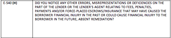 RB: Well, one was the very first question, which was question E10, and it would ask if the fees were charged to the borrower’s account during the review period. Well, the review period for us was different than the review period for the whole rest of the project. So we were not just going by anything that was, you know, related to a foreclosure during 2009 and 2010, we were going by the original default date.