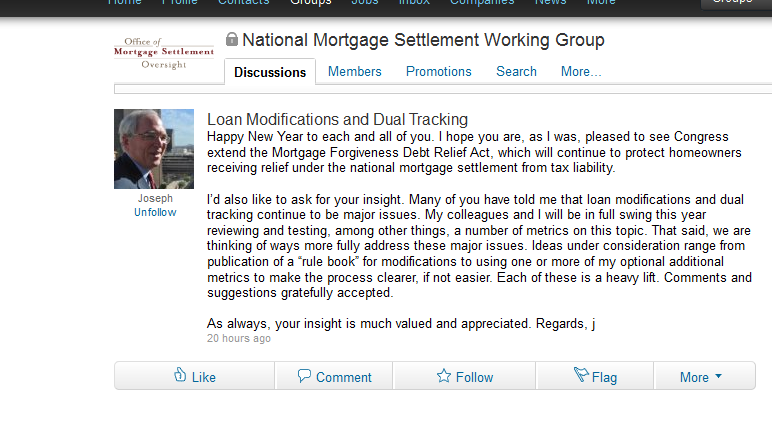 And if you think that was because banks were having trouble implementing new procedures, think again. Look at this pathetic bleat from the national settlement monitor, Joseph Smith, on January 4 (hat tip Lisa Epstein):