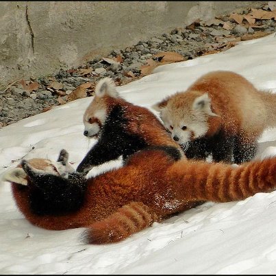 They’re Red Pandas, Ailurus fulgens, from China. Very popular on “cute animal” web sites.