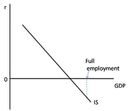 Figure 3: Disequilibrium in the IS market because of the zero lower bound (Krugman on Ferguson in 2009)