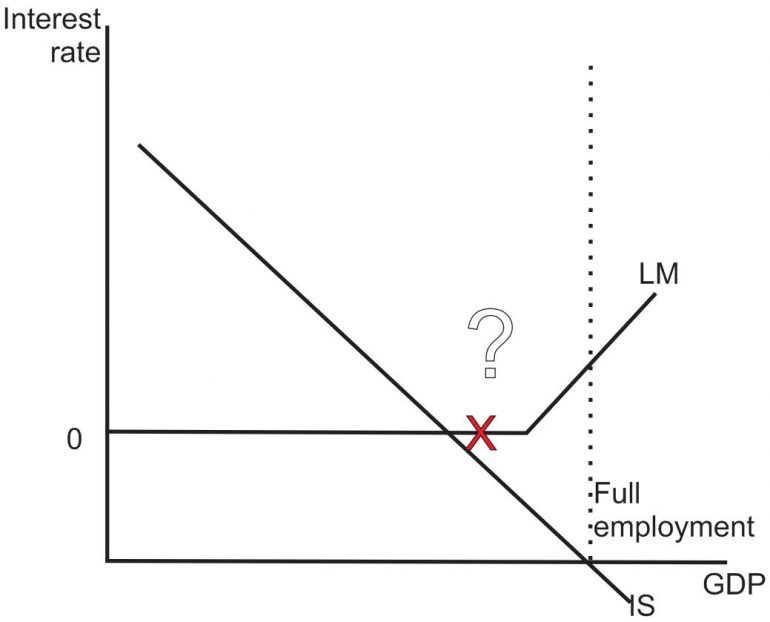“IS-LM makes some predictions about what happens in the liquidity trap. Budget deficits shift IS to the right; in the liquidity trap that has no effect on the interest rate. Increases in the money supply do nothing at all,” he said.