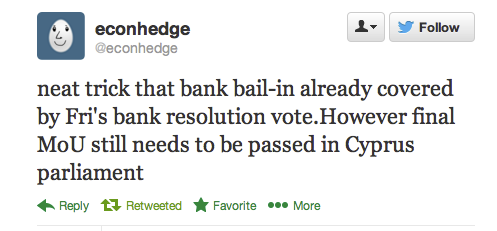– “The glaring exception to this is the transfer of the ELA transfer from Laiki to Bank of Cyprus … I am not sure *why* Bank of Cyprus creditors should be expected to take responsibility for Laiki’s official creditors, except for the fact that the official creditors don’t want to take losses.”
