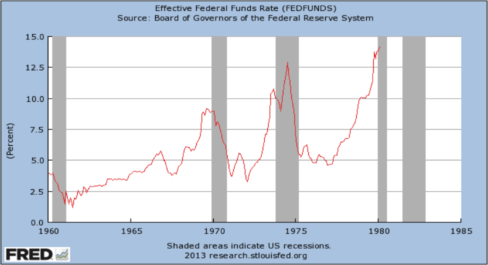 Both real economic performance and inflation were the impetus behind Volcker’s decision in late 1979 to introduce changes in the design and execution of monetary policy. The Fed adopted the targeting of monetary aggregates and changed operating procedures – targeting non-borrowed reserves instead of the Fed funds rate. The new targets and procedures are reflected in the behavior of the Fed funds rate, which became more volatile.