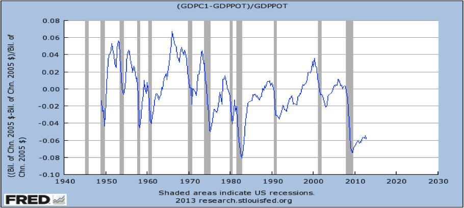 “For a return to full employment to be more than transitory, it must be supported by a sustainable pattern of demand. The pattern of demand was not sustainable in the mid-2000s. Consumption demand relative to income was too high and savings too low especially given the aging population. Investment in residential real estate investment was too high relative to income. The trade deficit was unsustainable and the Federal government was running a chronic fiscal deficit. ”