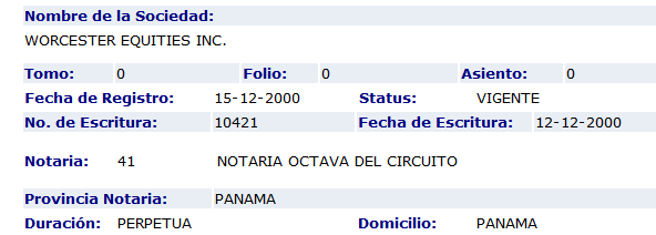First, the company was incorporated in 2000, not 1998, and a quick check of the official Panama registry