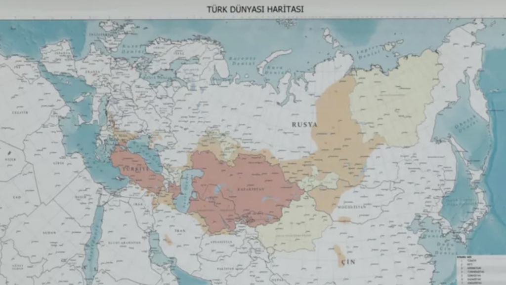 In 2021, Devlet Bahceli, presented the “Turkic World” map to Turkish President Recep Tayyip Erdogan.