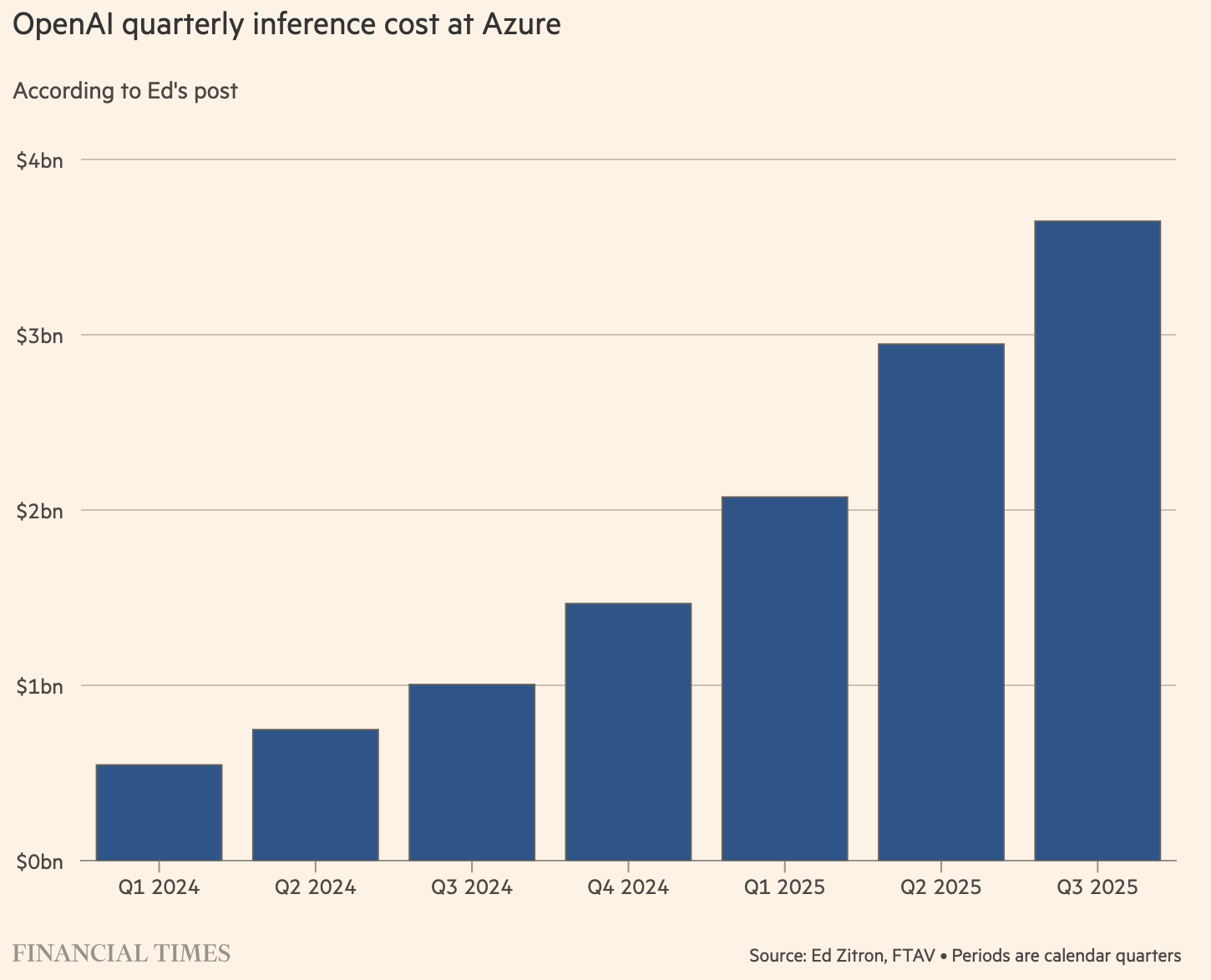 This is a pattern that has continued through the end of September. By that point in CY2025 — three months later — OpenAI had spent $8.67 billion on inference.