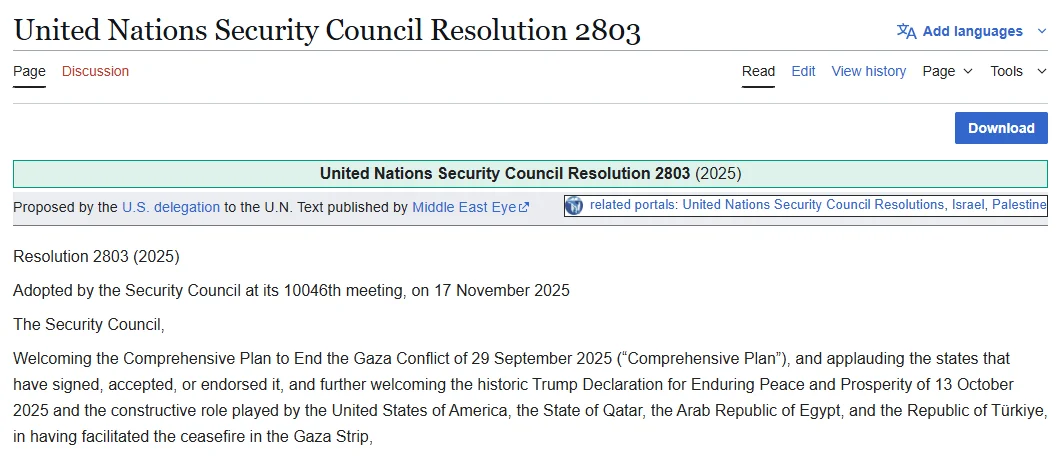 Source: https://en.wikisource.org/wiki/United_Nations_Security_Council_Resolution_2803 following https://www.middleeasteye.net/news/full-text-us-resolution-gaza-approved-un-security-council