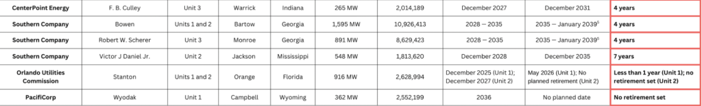 The fossil fuel facilities are located in regions across the country, from Maryland to Michigan and Georgia to Wyoming. Together, their two dozen coal-fired generators emitted more than 68 million tons of carbon dioxide in 2024. That’s more than the total emissions of Delaware, Maryland, and Washington, D.C. combined.