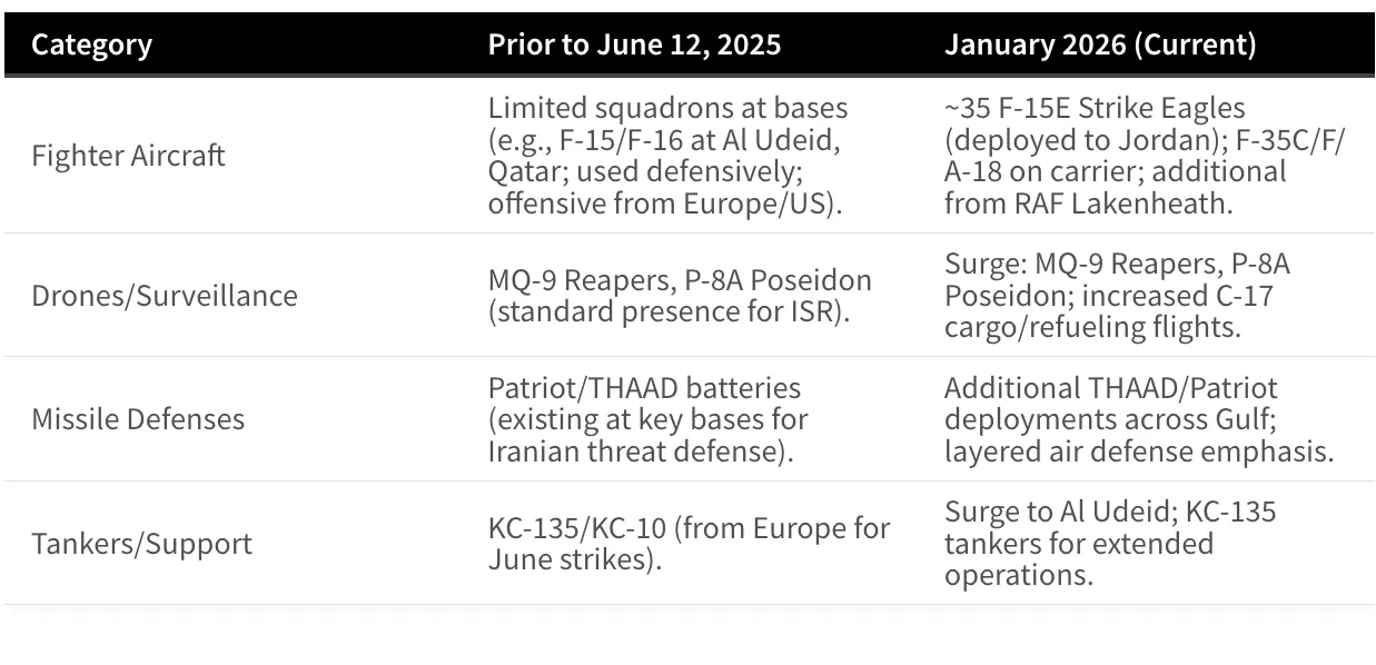 Despite Trump’s fondness of TACO, of huge threat displays followed by climbdowns after getting pretty minor concessions, his movement of so much military hardware into what is expected to become the Iran war theater has made that sort of retreat difficult. Larry Johnson provides these tables in his must-read Three Scenarios for a US Attack on Iran: