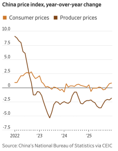 Deflation is increasingly a geopolitical liability. Squeezed in China, manufacturers are exporting more, notching a record $1.2 trillion trade surplus in 2025. Governments around the world are complaining about an influx of cheap Chinese goods that could hurt local industries.…
