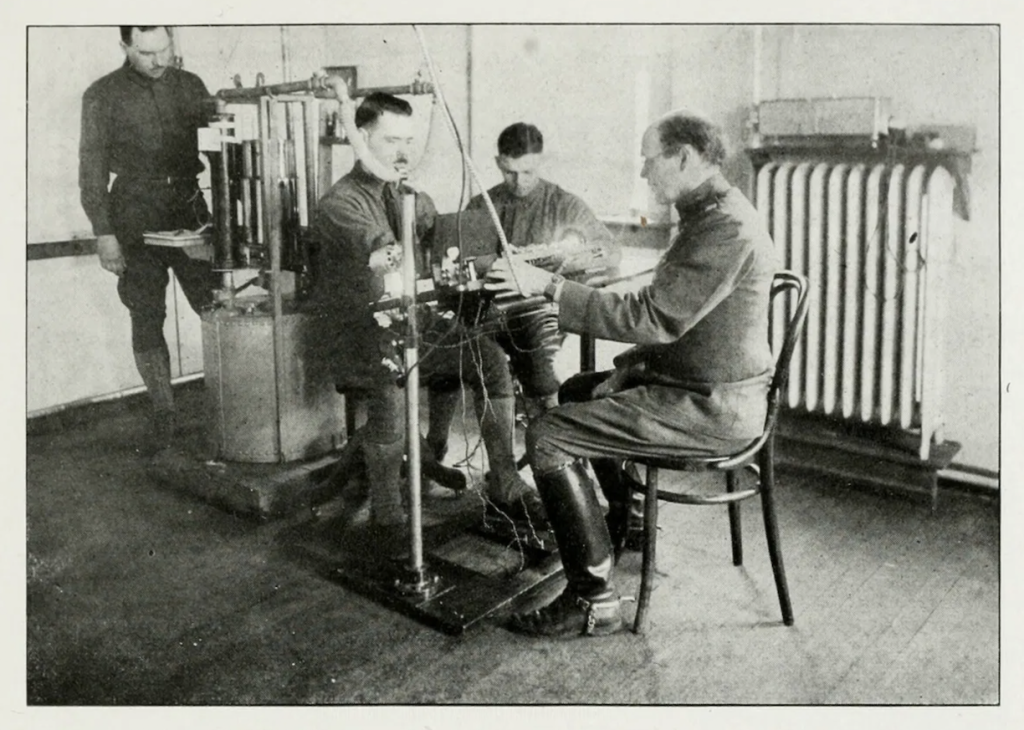 Military subject completing an early pursuit test developed by American psychologist Knight Dunlap for studying aviators’ attention, as featured in the United States War Department’s Air Service Medical (1919) — Source.